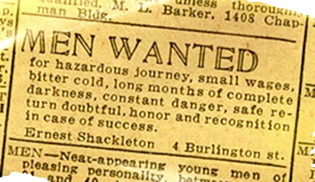 Okay, we're not planning a Shackleton-esq expedition of no return but you should be open-minded. We'll give you plenty of honor and recognition upon success.